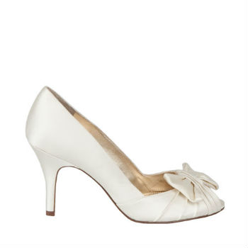 Pantofi de mireasa clasici cu o fundita in fata. Pret: $82.00. Produsul este disponibil pe site-ul Accesoriidenunta.ro