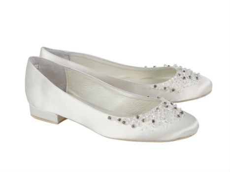 Balerini eleganti pentru mireasa. Sunt realizati din material textil la exterior si piele interior. Balerinii sunt accesorizati in partea din fata cu margele si cristale. Pret: 479.00 Lei. Produsul este disponibil pe site-ul IlPasso.ro