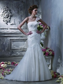 Rochie de mireasa pe un umar. Produsul este disponibil in magazinele Altesse.