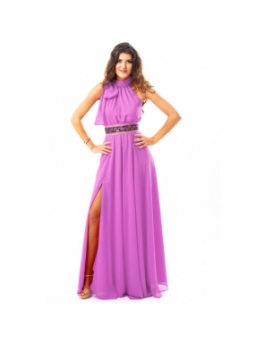 Rochia de seara este elastica in talie, iar bustul este amplu. Centura este reglabila, sistemul de prindere fiind asemanator corsetului.