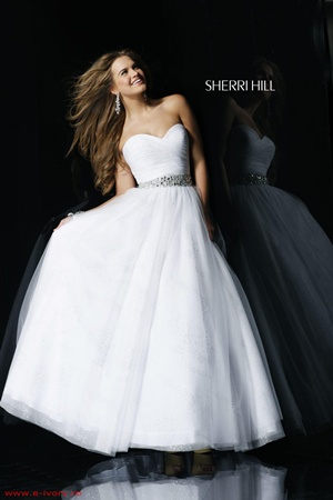 Rochie de mireasa disponibila pe site-ul E-ivory.ro. Rochia face parte din colectia Sherri Hill, cu preturi cuprinse intre 800 si 1800 de lei.