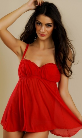 Baby doll Red Passion, cu piept buretat si bretele ajustabile.