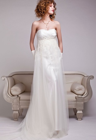 Nu trebuie sa amani nunta doar pentru ca ai ramas insarcinata! Este de ajuns sa iti cumperi sau sa iti comanzi rochia potrivita: nu prea mulata pe burta, dar nici prea larga; una care sa iti puna in valoare umerii si sanii, care sa fie destul de bufanta sub sani incat sa acopere burtica, dar sa fie inca la moda. Iata cateva modele de rochii de mireasa care s-ar potrivi acestei situatii...