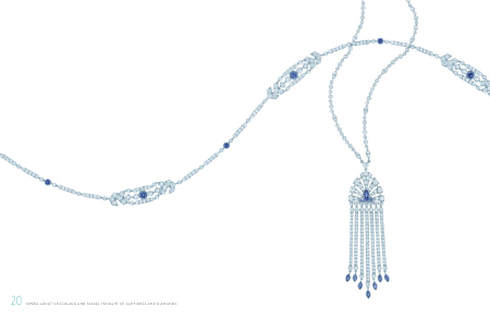 Atat colierul cat si pandantivul sunt realizate din platina cu damante si safire. O bijuterie impresionanta, pretioasa si sofisticata.