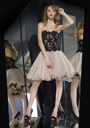 Bustiera din dantela, fara bretele si fusta ampla din chiffon vor atrage privirile si vor convinge ca esti o adevarata printesa moderna.