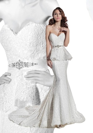 Rochie de mireasa stil sirena cu peplum pentru a evidentia zona taliei.