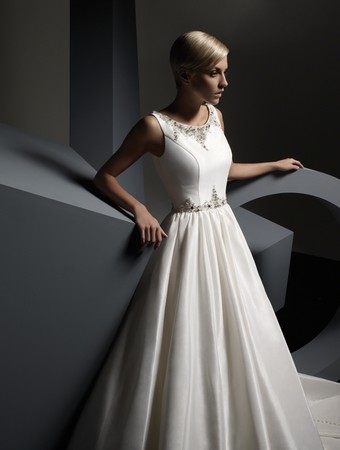 Rochie de mireasa Gina 2389 din tafta lux, cu trena